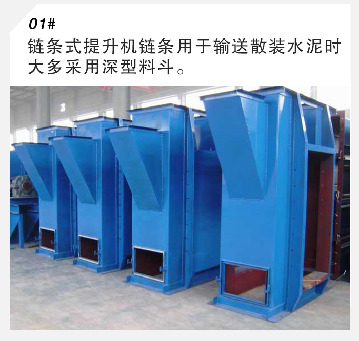 簡介:鏈條式提升機(jī)鏈條用于輸送散裝水泥時大多采用深型料斗